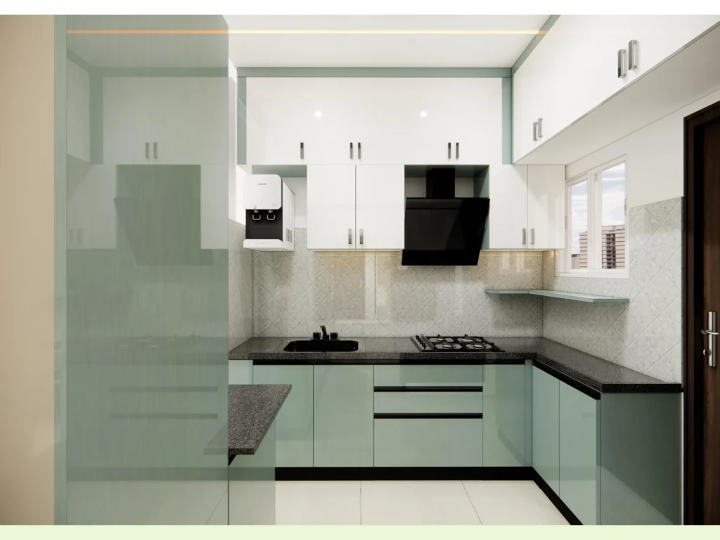 The kitchen is designed with a semi-modular concept combining the durability of built-in structures with the flexibility of modular units. It features smart storage, efficient layouts, and premium finishes. This approach offers clients a perfect balance of affordability and long-term value.